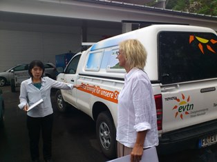 「シェーナウの想い〜自然エネルギー社会を子どもたちに〜」と題して映画化され、今や世界的にも有名になった南ドイツ、シュヴァルツヴァルトの小さな村は、今回、私たちが原発、エネルギー問題を考えるにあたってぜひ訪れたい場所でもあった。フライブルクからバスで1時間、深い森、美しい牧場地帯を通り抜け、小さな会社は運転手が見過ごすほどにほんとに小さな建物であった。EWS(エレクトリツィテーツ・ヴェルケ・シェーナウ)広報担当のユハ・シュラーゲンさんにお会いし、あらためてEWSについて生の思いを聞かせていただいた。