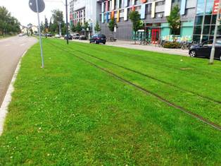 路面電車の軌道を包む芝生