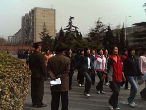 前庭では入学したばかりの学生が、軍隊から派遣された指導者の号令により行進訓練を繰り返している。