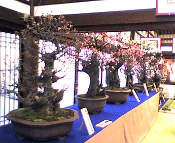 社殿に並ぶ すばらしい盆梅また盆梅 3月9日まで大盆梅展が開かれています |