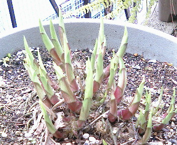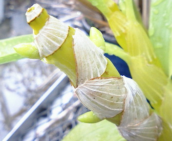 シンビジウムにも新芽 つんつん やんちゃそうです |