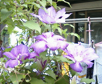 クレマチスご一行様 こないだまで死んでたのに どこにこんなあでやかな紫を秘めてたのか |