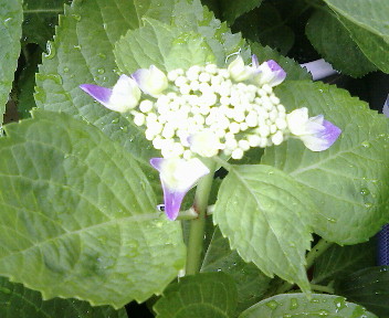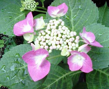 梅雨に入って元気なあじさいたち 豪華な西洋あじさいより 日本固有のガクあじさいが好きです |