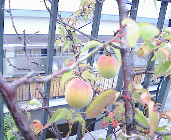 実のなるものは今年は不作です 虫にやられプルーンは全滅 姫りんごも花はたくさん咲きましたが実は僅かです |