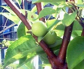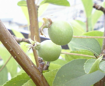 まだ幼い姫りんご プルーンは虫にやられて 今年はまだ実が見つかりません |