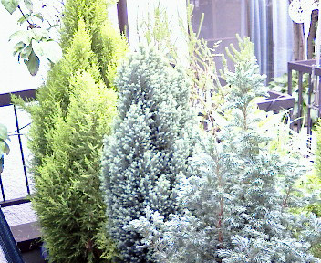 暑くなってきました コニファー達にも試練の夏です 耐えて大きく育て |