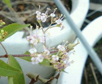 細部の、、、続きです 秋に小さな紫の実をつける紫式部 その花もほんの小さなものです |