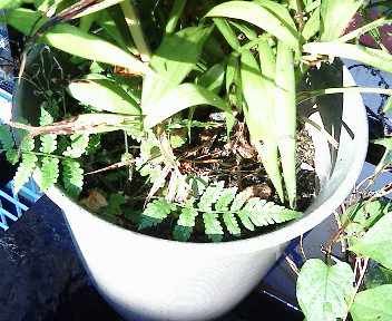 我が家では珍しいシダ類 テーブルヤシの下に潜んでいました どうやって来たんでしょうか |