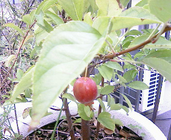 姫りんごの第一果 今年は少数精鋭 ゆっくり熟してほしいものです |